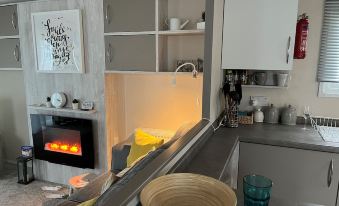 With a large open plan living area, TV, Wi-Fi and Netflix, there is an inviting glowing coal effect fire and fully fitted kitchen.