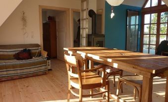 Fireplace that makes it very cozy in winter. There are two double bedrooms and a crawl floor with two mattresses. A bathroom with shower + tub + toilet.