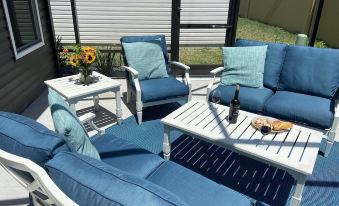 Inside you'll feel yourself relax amongst the designer furnishings in the spacious, light filled, open concept living room. Sit back, enjoy a beverage and take a stroll down memory lane as you listen to our carefully curated selection of vinyl records. Or perhaps cook a gourmet meal in the fully outfitted kitchen that has everything you may need. Stainless steel appliances, gas range, Keurig coffee maker - and we always try to leave farm fresh eggs when our hens are laying. You'll find enough cleaning supplies under the sink to get you started.