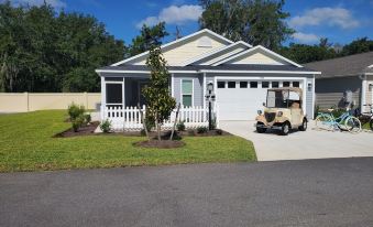 This two-bed, two-bath villa is available from May 1st, 2024, to December 31, 2024. The villa is situated in the coveted Village of Richmond and comes with a Yesteryear Golf Cart, bikes, linens, a fully equipped kitchen, a double-car garage, screed-in Linai, corner lot, washer/dryer, Wi-Fi, and two TVs. It is pet-friendly and is in an excellent location. You can easily access Brownwood Paddock Square, Publix, Lake Okahumpa, and numerous brand-new recreation centers within 5 minutes on the golf cart. The brand-new Clarendon Rec Center is a short walk away and boasts family and adult pools, pickleball courts, tennis, bocce, shuffleboard, sand courts, platform tennis, and outdoor exercise equipment. There are walking trails, kayak launches, fire pits, golf courses, and pitch and putt nearby. You can enjoy all the brand-new furnishings that create an inviting and comfortable environment. Both bedrooms have smart TVs and cable. One bedroom comes with a king-size bed, and the other has a queen-size bed. You will have all the amenities you need to feel at home. Beach chairs, beach towels, and bicycles are available for your use.