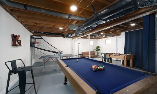 If you want more interactive fun, head down to the basement to find our newly renovated Gameroom! Shoot some hoops, play pool, ping pong, or get competitive at the foosball table. Should you need to throw a load of clothes to wash, you are more than welcome to utilize the laundry room also located down here.