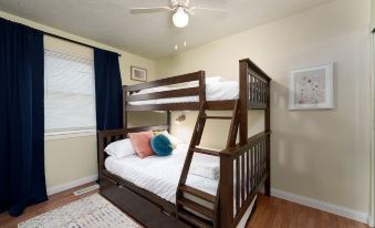 Enjoy large beds- King located in the master, a queen in the small bedroom 2, and a twin/full bunk and trundle in bedroom 3. Our bunk is made of durable solid wood and sturdy enough for both kids and adults (we tried them out for ya!)
