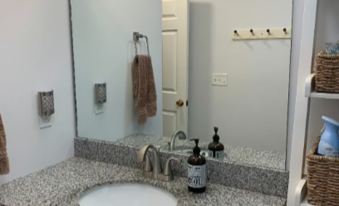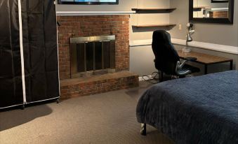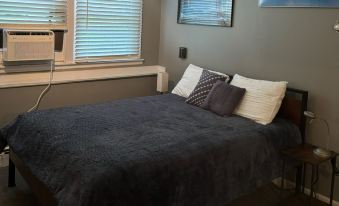 Downstairs is a spacious queen bedroom that includes a dedicated workspace, a large reclining sofa in front of a big-screen TV! You’ll have easy access to a grand private patio and the backyard right from this room (note: the downstairs gas fireplace is not currently functional). We provide a pack-n-play, that serves families with young children or pets who may enjoy the quiet and additional privacy it offers.