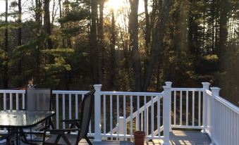 🌄 Tranquil Setting: Wake up to peaceful birdsong every morning and enjoy the serenity of Vermont, in any season. The large elevated deck is the perfect spot to sip your morning coffee or enjoy a family BBQ, all while watching the wildlife in your own backyard. At night you may enjoy our wood-burning firepit down below, we keep wood for you to use all year round and to toast marshmallows or just enjoy the wide open starry sky. With proximity to the BTV Airport, you may even enjoy watching an occasional airshow. The VT Air National Guard flies F-35 fighters which are often viewable, usually between 9am and 2pm.