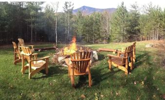 Miles of marked trails for jogging, biking, hiking, X-country skiing and snowshoeing begin right at your doorstep! Snowshoeing amid acres of snow laden cedars will be a memory you will long remember. The cabin is 1,200' from the road to assure peace and quiet. The 2,750' Winch Mt. provides breathtaking views and is directly behind the cabin. Our cabin has two air-conditioned bedrooms each with a very lavish king size bed that can be converted into two twin beds upon request, a spacious bathroom, and a large kitchen/dining area with cozy couches next to a warm fireplace. A covered 28' porch looks directly at Whiteface Mountain Range and their spectacular sunsets. (Bring your camera!) Our large fire pit is the perfect place to end a day of Adirondack activities. We are a pet friendly property so, without question, bring along your four-legged friend although he/she may not want to return home with you! Please check out our video showing the location and aerial views of the property here https://youtu.be/CBh58CxiV2I
