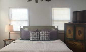 This studio is perfect. Whether in town for business, a wedding or one of Wilmington's famous festivals, this efficiency is sure to please. It has an extremely comfortable king sized bed, luxury linens, office area, view of a mature back yard, and use of 2 brand new bicycles. Located on a corner, with direct access to the Mayfaire Shopping Center, City Trail, and two miles from the beach. Come relax. Daily maid/laundry service is available.