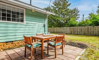 Cheer will feel you as pull up to this bright, adorable bungalow built in 1915. You'll immediately notice the huge amount of parking and the fenced in backyard. Inside features a coastal living room with a smart TV, plenty of seating, and stocked with games and puzzles. The living room opens to the spacious dining room which seats 6 and boasts tons of natural light. The kitchen is well equipped and even awaits treats for your pups. Overlooking the backyard is a charming, eclectic sunroom which homes the coffee bar and even a desk for those needing to work remote. The first bedroom is a cheery space with a queen bed. This bedroom shares a full bathroom with a tub with the second bedroom which has 2 twin beds and a trundle bed sleeping 3. The third bedroom is a fun, little space with a twin bed and an ensuite bathroom with a standup shower. Let the pups run in the backyard while you eat dinner outside on the patio or while you have your coffee on the deck. Or enjoy a game of corn hole with your friends and family (corn hole boards included). I know this home will too be your "happy place."About pets:Pets allowed: dogs (limit 2 total).About checkOut:Check out before 10:00 AM.About children:Children allowed: ages 0-17.About checkIn:Check in after 3:00 PM.About smoking:Smoking is not permitted.About minBookingAge:Minimum age to rent: 21.About events:No events allowed.