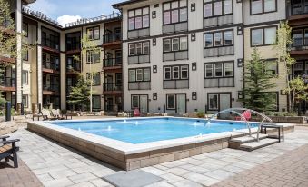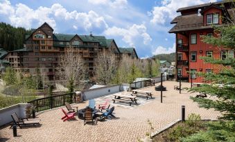 The property offers a range of amenities, including an outdoor hot tub in the common area, a grill, and a main floor lobby featuring a seating area, and a flat screen TV, along with private ski lockers. Additionally, there is an expansive amenity deck that includes coin-operated laundry facilities, changing rooms, a hot tub, a barbecue grille, an outdoor fireplace, and scenic views of the slopes. The restaurants, shops, and activities in the Village are conveniently located just a short walk across Winter Park Drive.