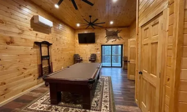 With 4 beds and 2.5 baths, Whispering Woods includes a pool table, theater room, and arcade games that will keep the whole family entertained!