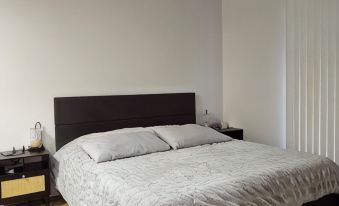 The apartment features a cozy queen-size bed, a spacious living room, a fully equipped modern kitchen, and a clean, contemporary bathroom.