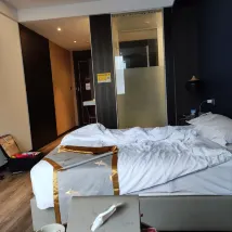 방은 넓었지만 구조가 좀 불편했어요. 우선 방 안에 작은 바가 있었는데, 쓸모가 없어 공간을 너무 많이 차지했어요. 욕실과 화장실은 분리되어 있었는데, 욕실 세면대가 너무 작고 스위치가 잘 안 열려서 물을 쏟거나 바닥에 쏟기 쉬웠어요. 슬리퍼는 아주 숨겨진 문이 있는 옷장에 숨겨져 있어서 탐정처럼 잘 찾지 않으면 찾기가 어려웠어요. 표지판을 붙여서 찾기 쉽게 해두는 걸 추천해요! 다행히 가격도 저렴해서 가성비는 좋았어요!