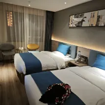 몇 년 전, 복권에 당첨되어 우시를 방문할 계획이었지만 지진으로 기차 운행이 중단되어 여행을 놓쳤습니다. 이번에는 우시에 경유하게 되어 놓친 기회를 만회하기 위해 하루 묵기로 했습니다. 이 호텔은 정말 훌륭한 선택이었습니다. 시내 중심가와 매우 가까웠고, 몇몇 명소도 걸어서 갈 수 있는 거리에 있었습니다. 침구도 편안해서 아주 푹 잤습니다.