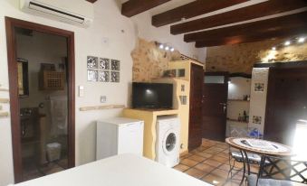 Discover a unique corner in our Historic Hideaway in the heart of Jávea. This studio, surrounded by authentic Tosca stone walls, offers a perfect blend of history and modern comfort. Although it's located in the epicenter of the hustle and bustle of the old town, once inside, you'll enjoy a tranquil and cozy oasis. The kitchenette is equipped with a stove, microwave, kettle, toaster, and coffee maker, ideal for your mornings. Additionally, it has a washing machine for added convenience during extended stays. Outside, relax on our shared terrace upstairs or walk the narrow streets, predominantly pedestrian, coming alive with restaurants extending their tables outdoors, offering an unparalleled gastronomic atmosphere. Although these streets don't have parking, unloading luggage is permitted. Immerse yourself in the true essence of Jávea by staying in our charming studioAbout pets:No pets allowed.About checkOut:Check out before 11:00 AM.About children:Children allowed: ages 0-17.About checkIn:Check in after 3:00 PM.About smoking:Smoking allowed: in designated areas.About minBookingAge:Minimum age to rent: 18.About events:No events allowed.