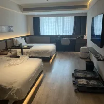 장점: 새 호텔, 깨끗한 객실, 충분한 공간, 더블 침대가 충분히 크고, 매우 배려심 있는 자정 간식 서비스(죽)가 있습니다.