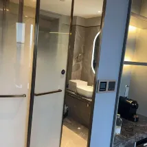 4. 방의 경우 샤워실에 옷을 걸어둘 곳이 없습니다. 화장실 문과 샤워실 문이 반투명해서 가족들이 화장실에 가거나 샤워하고 옷을 갈아입는 것이 매우 당황스럽습니다.