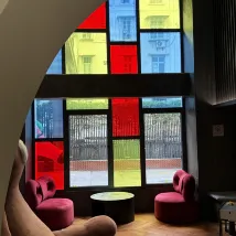 2. 문 손잡이와 잠금장치가 좀 고장 났고, 자주 안 잠기더라고요. 좀 위험했어요. 3. 화장실도 이상했어요. 센서가 켜졌다 꺼졌다 하는 게 좀 불편했어요. 4. 유일하게 마음에 들었던 건 바닥부터 천장까지 뚫린 창문이었어요. 5. 방에 테이블 하나랑 스툴 하나밖에 없어서 친구랑 저는 테이블에서 먹고, 친구랑 저는 침대에서 먹었어요. 방이 너무 좁았어요.