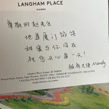 샤먼에서 주걸륜 콘서트를 보기 위해 랭햄 호텔을 선택했는데, 정말 옳은 선택이었어요! 어디를 봐도 멋진 놀라움이 가득했어요. 고객 서비스도 훌륭했고, 특히 고객 관계 부서의 리셉션 담당자인 펄 쳉은 정말 최고였어요. 👍🏻 체크인 당일에 제 생일이었음을 알고 방을 업그레이드해 주고, 예쁘게 장식해 주고, 생일 케이크도 준비해 주셨어요. 호텔에서 콘서트장까지 무료 셔틀버스까지 준비해 주셔서 외지인인 저희가 교통편 걱정 없이 편하게 갈 수 있었어요. 정말 세심하게 배려해 주셨어요! 콘서트 다음 날에는 주걸륜 가사가 적힌 깜짝 손편지도 준비해 주셨어요. 정말 세심한 배려였어요. 이용 경험도 정말 환상적이었어요! 다음에 샤먼에 가면 꼭 랭햄 호텔을 다시 선택할 거예요. 👍🏻