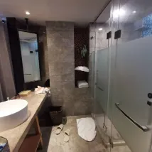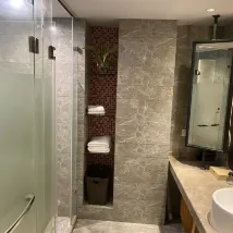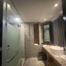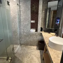 가족여행이라 프론트에서 패밀리스위트로 업그레이드해줬어요 방도 넓고 침대도 너무 푹신했어요 여기 묵고 찍은 사진이라 물건이 너무 많고 좀 지저분해 보였어요. 호텔은 매우 좋았습니다. 작은 제안을 드리고 싶습니다. 욕실에 큰 문을 설치하세요. 그렇지 않으면 가족이 화장실에 가는 것이 조금 어색해질 것입니다.