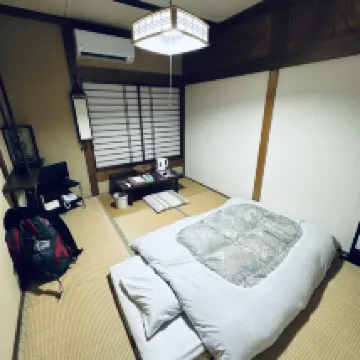 전형적인 일본풍 객실이었는데, 편안하고 꽤 괜찮았습니다. 기차역과 식당가 근처라 위치는 편리했습니다. 다만, 주인분의 응대가 다소 불친절했고, 설명도 거의 없었습니다. 주인분께서는 5초 만에 열쇠를 건네며 '룸 에이트(room eight)'라고 말한 뒤, 손짓으로 '1층, 왼쪽, 그리고 오른쪽'을 알려주셨습니다. 하지만 방 문에 적힌 번호가 일본어로 되어 있어 제가 이해할 수 없었습니다. 결국 직접 올라오셔서 방을 보여주셨는데, 마치 제가 당연히 알아들어야 한다는 듯이 '에이트!'라고 두세 번 강조하시더군요. 그 외에는 별다른 문제는 없었습니다.