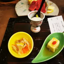 전통적인 일본식 여관임에도 불구하고 예술 장식과 피아노 음악이 오랫동안 연주되어 여유롭고 편안한 느낌을 줍니다. 음식의 질이 기대보다 좋고, 서양적인 요소가 추가되어 매우 만족스럽습니다.