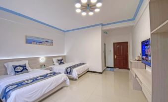 訂了海景雙床房,一層兩個房間,安靜,房間很大,衞生不錯,還配了一次性洗浴用品,洗手間沒有異味,看着大海,舒心,樓下有咖啡店,晚上還有燒烤,鎮中心,去哪裡都方便,還有電動車出租,值得推薦