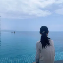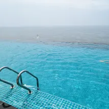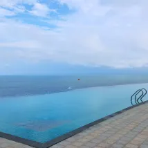 원래 제가 가장 좋아했던 건 이 호텔의 옥상 인피니티 풀이었는데, 실망하지 않았어요. 바다는 푸르렀고 하늘도 푸르렀고, 사람들은 바다에서 수영을 하며 즐거운 시간을 보내고 있었습니다. 공휴일이 아니어서 사람이 많지 않았습니다.