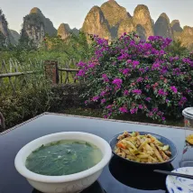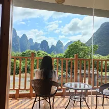 경치가 꽤 좋습니다. 근처에 오를 수 있는 야생산이 있습니다. 방이 마을 끝에 있다는 것은 이미 알고 있었지만, 배터리 차가 없으면 정말 불편하다고 다른 리뷰에서 보았습니다. 좋은 것 같아요. 가격이 비싸다고 할 수는 없지만 비용 효율적이라고 말씀하셨어요. 예를 들어 아침 식사로 16위안의 계림 쌀국수가 없고 신맛이 나는 죽순도 없습니다. 그릇이고 땅콩이 빠진 것 같아요. 근처에 다른 옵션이 없어서 전반적으로 괜찮습니다.