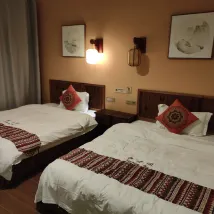 여관의 환경은 매우 좋고 매우 조용하며 방이 넓고 풍경이 아름답습니다. 그러나 방에 들어간 후 첫인상은 바닥이 매우 먼지가 많다는 것이었습니다! 아마도 밖에는 비포장 도로가 있어서 먼지가 많이 쌓여서 그런 것 같았습니다. 아침 식사는 맛이 좋았으나 양이 조금 작아서 배가 부르지는 않았습니다. 아이들은 과일이 곁들여진 잡곡정식을 좋아합니다. 여관에서는 하루에 RMB 30에 배터리를 빌릴 수 있지만 자동차 조명이 그다지 친절하지 않고 밤에 여관으로 돌아올 때 스포트라이트가 평범합니다. 밤에 탈 때는 조심하세요. 또 한 가지 가장 불만스러운 점은 아직 체크아웃도 안 했고, 청소도 요청하지 않았다는 점이에요. 아침 식사 후 숙소에 도착하기 전인 9시쯤에 방으로 돌아가 짐을 꾸렸습니다. 방 문이 저 멀리 복도에 열려 있는 걸 보았는데, 웨이터 2명이 이미 방을 청소하고 있었습니다. 내 짐이 아직 방에 정리되지 않았는데, 서둘러 가신다는 게 무슨 뜻인가요?