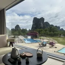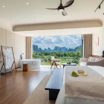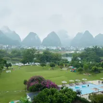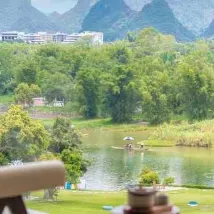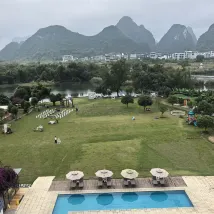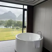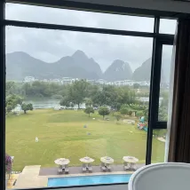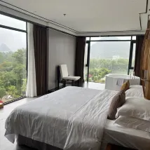호텔은 텐마일 갤러리(Ten-Mile Gallery) 한가운데에 위치해 있으며, 잔디밭이 위룽 강(Yulong River)까지 펼쳐져 그림 같은 풍경을 선사합니다. 호텔에는 여름철 수영에 안성맞춤인 여러 개의 수영장이 있습니다. 잔디밭에서는 축구, 양궁, 프리즈비를 즐길 수 있고, 강가에서는 낚시도 즐길 수 있습니다. 호텔은 다양한 액티비티를 제공하여 어린이를 동반한 가족 여행객에게 적합합니다. 호텔 객실에는 무료 음료와 생수, 일회용 욕조 라이너와 변기 커버가 제공되며, 헤어드라이어는 라이펀(Laifen) 브랜드입니다. 침구는 깨끗하고 편안하여 숙면을 취할 수 있습니다. 직원들은 매우 친절하고 따뜻하게 맞아주며, 항상 미소로 맞이하여 편안한 숙박을 보장합니다. 호텔 조식은 다양하며, 특히 맛있는 계림 쌀국수가 유명합니다. 전반적으로 매우 만족스러운 경험이었고, 친구들에게 추천하고 싶습니다. 기회가 된다면 꼭 다시 방문하고 싶습니다.