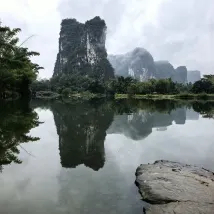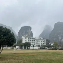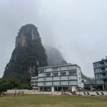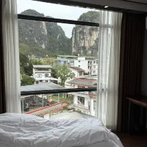 양숴 100m 하이킹 & 트레일 러닝 대회에 참가하는 동안 위위안 징서 호텔에 묵었습니다. 처음에는 편의를 위해 선택했지만, 여행 중에 예상치 못하게 기분 좋은 놀라움이 되었습니다. 십리화랑(十里畵廊)의 위룽 강변에 위치한 이 호텔은 마치 수묵화를 연상시키는 숨 막힐 듯 아름다운 카르스트 봉우리들을 선사합니다. 특히 밤에는 반대편 산들이 은은한 조명으로 밝혀져 몽환적인 분위기를 자아냅니다.