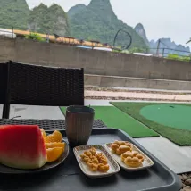 This home stay is everything you want in a home stay ! The lady that runs the place is so lovely ! The rooms are great, clean and has everything you need including gowns and slippers! The views are amazing from every room and so comfortable. The breakfast is Chinese with noodles, corn and some bread. Very impressed by this place . I’d stay again if I came yo Yangshuo. It is about 20 minutes away from the hustle so it works out perfectly . There’s even an e-bike hire next door so you can hire one and explore.