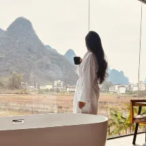숙소 답변: 【 Encounter by the Dragon River 】 【 Sky Realm 】 【 Internet celebrity check-in 】 Thank you for your choice and support! The hotel is located in the core scenic area of Yulong River, and all rooms have a direct view of the Yangshuo Mountains. The lotus flowers in front of the door are graceful and fluttering in the wind. The rooms are equipped with observation bathtubs, water purifiers, and air fresheners, ensuring that you can enjoy the purest vacation time in the fields. There is an endless swimming pool downstairs, and a mirror of the sky upstairs. You can easily take beautiful photos. Gongxing Society · Yushe adheres to the service philosophy of treating guests like family. We have prepared a nutritious buffet breakfast, a sumptuous afternoon tea, and welcome seasonal fruits for you. I hope the next time we meet, comfort and happiness will still be your standard configuration. Coupled with the beautiful shadows of the Sky Realm and the warmth of your family, it will create a beautiful memory in your life! Looking forward to seeing you again and wishing you a happy life~
