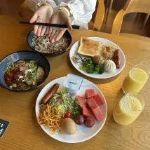 숙소 방은 사진에서 본 것과 똑같고, 에터너미들이 아주 훌륭했습니다. 조식은 현지향이 강해서 먹기 힘든 음식이 있었지만, 과일이 맛있고 고기 청경채는 괜찮았습니다.