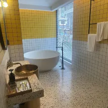 호텔 스타일은 전체적으로 어두운 톤이었지만, 레트로하고 고급스러운 느낌이 있었어요. 방은 편안하고 깨끗해서 머무는 동안 정말 만족스러웠습니다. 서가 입구에 위치해 있었는데도 방음이 아주 잘 되어서 좋았어요!