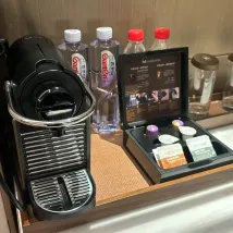 3명이 숙박할 수 있고 욕실이 2개 있는 객실 유형으로 업그레이드되어 친구들 모두가 편안하게 지낼 수 있게 되어 영광입니다. 전체적인 공간은 그리 작지 않고, 티포트도 있어요~