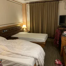 호텔은 조금 오래되었지만 객실과 욕실은 넓습니다. 돌 욕조는 온천에 몸을 담그기에 매우 편안하지만 침대는 약간 딱딱합니다.
