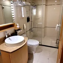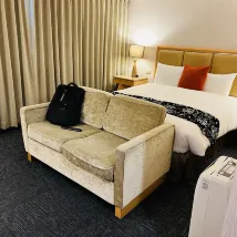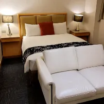 공간감도 좋고 매트리스도 잘 받쳐주지만 푹신한 침대를 선호하시는 분들은 고려해보세요. 욕실 수도꼭지의 냉온수 표시가 되어 있지 않으니 숙소 입구와 출구를 잘 살펴보셔야 합니다. 바닥은 자기 카드로 제어되므로 어느 정도 안전합니다.