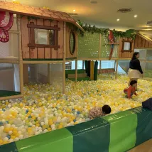 호텔의 외관, 실내시설, 부모님과 자녀 여행에 매우 좋습니다. 그리고 슬라이드, 볼풀, 전기자동차를 추가할 수 있는 작은 코너도 있어요.
