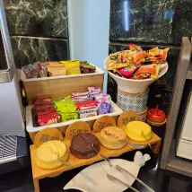 1박에 두 개의 객실을 예약했습니다. 에어컨은 창문형이었습니다. 한 방은 에어컨이 충분하지 않아서 다른 방으로 바꿔 달라고 요청했습니다. 하지만 에어컨이 약간 오래되었고 시끄러웠습니다. 방은 꽤 작고 trip.com에 적힌 25제곱미터와는 꽤 다릅니다. 직원들은 5핑(16제곱미터)이고 노트북이나 작은 물건만 넣을 수 있다고 말했습니다. 침대시트와 이불은 깨끗했지만, 샤워헤드 두 개가 꽤 더러웠습니다. 또한 풍성한 뷔페와 다양한 종류의 커피도 훌륭했습니다.