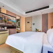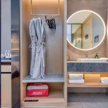 호텔의 위치는 찾기 쉽고 교통도 편리하며 객실도 넓고 밝으며 체크인할 때 프론트 서비스도 잘 되어있습니다. 멜론차 시원하고 맛있었습니다. 더운 여름날 한 모금 마시기 정말 좋았습니다. 체크인 시 무료 세탁실과 건조기가 있어 매우 편리했습니다. 테이크아웃 주문시 배달해주는 로봇. 무료 헬스장도 있고, 식사하기에도 매우 편리합니다. 우웨플라자(Wuyue Plaza)가 바로 옆에 있으며, 도보로 몇 분밖에 걸리지 않습니다. 매우 만족스러운 경험입니다.