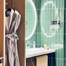 Wuyue Plaza와 매우 가까우며 옆에 International Trade City와 Jiming Pavilion이 있어 매우 편리합니다. 일찍 도착하면 쇼핑을 통해 많은 것을 얻을 수 있습니다. 빈 방이 있으면 일찍 가면 좋아요. 헝디엔에 가고 싶다면 오후 10시에 짐을 찾으러 돌아올 때 짐을 무료로 보관할 수 있습니다. 집으로 돌아가기 전에 프런트 로비에 있는 화장실에 가서 배터리를 충전할 수 있습니다. 작은 로봇이 음식을 방으로 배달하는데 정말 귀엽습니다. 세면대, 샤워실, 화장실, 조명이 달린 화장거울, 대형 전신거울, 옷장걸이, 소형 냉장고가 갖춰져 있습니다. 창문은 바닥에서 천장까지 크고 야경이 좋습니다. 소파는 품질이 좋고 두 사람이 사용하기에 매우 저렴합니다. 방은 꽤 넓고 침구는 편안합니다. 화장실은 스마트하고 세면도구 가방에 있는 세면도구도 품질이 좋습니다. 트림~ 한마디로 매우 만족스럽습니다. 그런데 무료 세탁 및 다림질 공간도 있는데, 시간이 없어서 사용할 수 없었습니다. 사업이 번창하고 점점 더 좋아지기를 바랍니다.