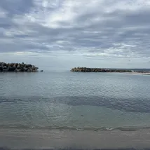 해변을 따라 무료 족욕탕이 여러 개 있습니다.