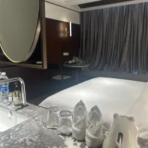 호텔은 환경이 매우 좋고 넓고 밝습니다! 통풍도 잘되고, 여름에도 습하지 않아서 살기 편하고, 서비스도 좋습니다. 프론트 직원 069가 친절하고 세심하게 설명도 해주시네요! 체크인할 때 미네랄 워터가 제공되었습니다. 목마를 때 눈밭에 탄산을 주는 것처럼 따뜻했습니다. 로비에는 무료로 제공되는 차와 갓 갈아낸 커피 향이 로비 전체에 퍼지고 향이 좋습니다. 이 호텔은 정말 마음에 듭니다. 방 구조도 중국식이고 침대가 라텍스로 되어 있어서 매우 푹신하고 편안하고 화장실이 건식과 습식이 분리되어 있고 창문이 바닥인 점이 마음에 듭니다. 특히 방의 방음이 매우 좋고 잠에 전혀 영향을 미치지 않습니다. 다음번에도 이곳에 묵을 의향이 있습니다. 추천합니다!