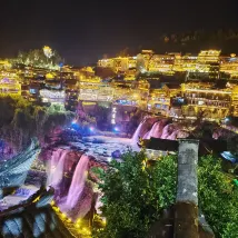도착했을 때 직원이 주차장에서 우리를 마중 나왔어요 호텔은 풍경구 안에 있습니다 풍경구에 들어가려면 티켓을 사야합니다 우리는 최상층 방에 묵었습니다. 폭포, 야경, 낮 풍경이 너무 아름다웠어요.