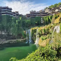 구시가지에 위치하고 두 개의 쇼를 포함한 입장료를 지불해야 합니다... 구시가지로 들어갈 수 있는 곳 중 하나에 도착했을 때, 호텔에서 사람들을 보내 모든 짐을 구시가지로 직접 운반해 호텔까지 약 10분 정도 걸어갔지만 돌아올 때 호텔에 구시가지 밖으로 짐을 운반해 줄 직원이 충분하지 않았습니다... 샤워실 바닥과 벽은 더럽고 곰팡이가 가득했습니다. 아침 식사는 포함되어 있었지만 국수 한 그릇(재료가 거의 없음)과 삶은 달걀 한 개로 간단했습니다. KTV 노래는 시끄럽고 옆집 레스토랑에서 밤늦게까지 들렸습니다.