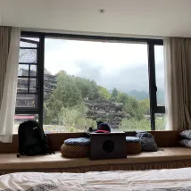 여관은 고대 도시 안에 있어서 걸어가려면 조금 걸어야 하지만, 도착하자마자 방에서 보이는 풍경은 땀을 뻘뻘 흘릴 만한 가치가 있었습니다. '컨시어지' 서비스를 제공해 주차장에서 여관까지 짐을 옮겨주는 등 서비스가 매우 좋았습니다. 아침 식사는 삶은 달걀 하나와 메이차(중국 전통차)를 곁들인 간단한 현지 국수였지만, 따뜻하게 제공되는 음식 덕분에 간편하고 맛도 좋았습니다! 고대 도시 안에서 숙박하는 경험을 원한다면 정말 좋은 선택입니다. 호텔 창문에서 보이는 풍경은 저희와 공유했습니다.