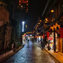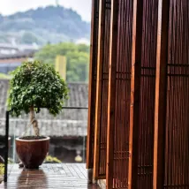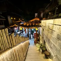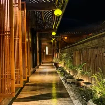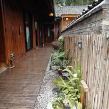 여관들 중에서도 비교적 새로운 곳이고, 공공장소에서 사진을 찍기 좋은 곳입니다. 바이쇼탕교(투왕교) 건너편, 동문(아마 이 문일 듯) 근처, 폭포 입구와 가깝습니다. 여관 자체의 계단을 제외하고는 차로 접근하기 쉽고, 마을의 모든 계단을 피할 수 있습니다.
