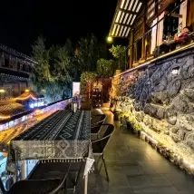 아주 좋은 숙박 경험! 사장님께서 불로 끓여주신 차 한잔도 주셨네요. 한 무리의 사람들이 발코니에서 차를 마시고 이야기를 나누며 거리 풍경을 바라보며 투어 가이드의 설명을 들었습니다.