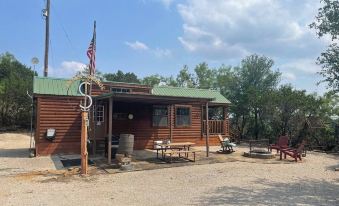 Five min from Wildcatter Ranch, this peaceful, fully-equipped cabin set on a bluff overlooking the Brazos River.
