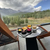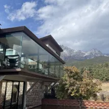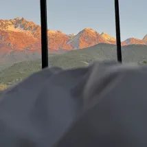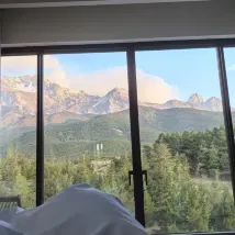 호텔의 모든 구석구석이 세심하게 배치된 것처럼 보이며 호텔 건물 전체와 객실 배치가 옥룡설산의 풍경과 조화를 이루고 반영됩니다. 다음날 아침 눈을 떴을 때 일조 금산을 볼 수 있었던 것은 행운이었습니다. 몰입감이 매우 몽환적이었습니다. 눈 덮인 산을 본 적이 없어서, 산 아래의 무성한 나무와 풀, 마당 앞 연못의 맑은 물을 휘젓는 돌풍에 더욱 놀랐습니다. 풍경화는 그 이상도 이하도 아니었습니다.